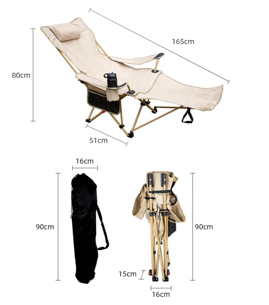 Kreslo asanlıqla qatlanır və daşıma çantası ilə birlikdə təqdim olunur, bu da onu bağ, piknik, balıqçılıq və çimərlik səfərləri üçün ideal edir.