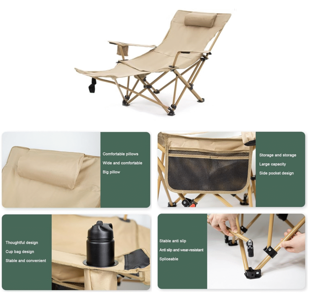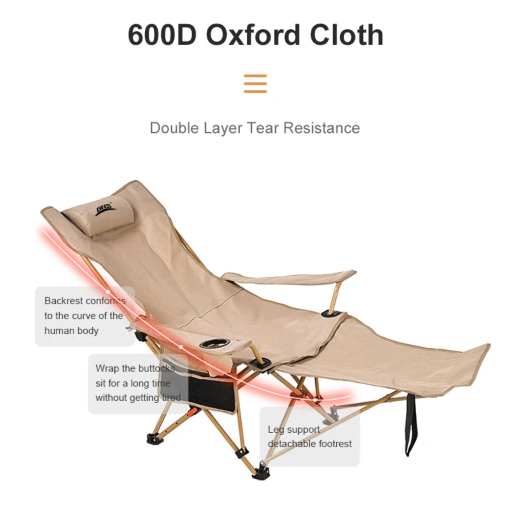 Bu qatlanan düşərgə kreslosu tam dolğulu və ergonomik bel dayağı dizaynına malikdir – uzun müddət oturduqda belə yorğunluq hiss etməyəcəksiniz.