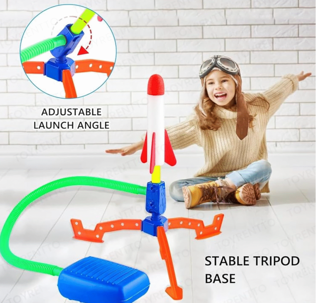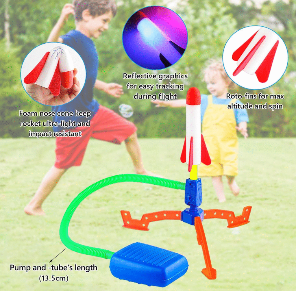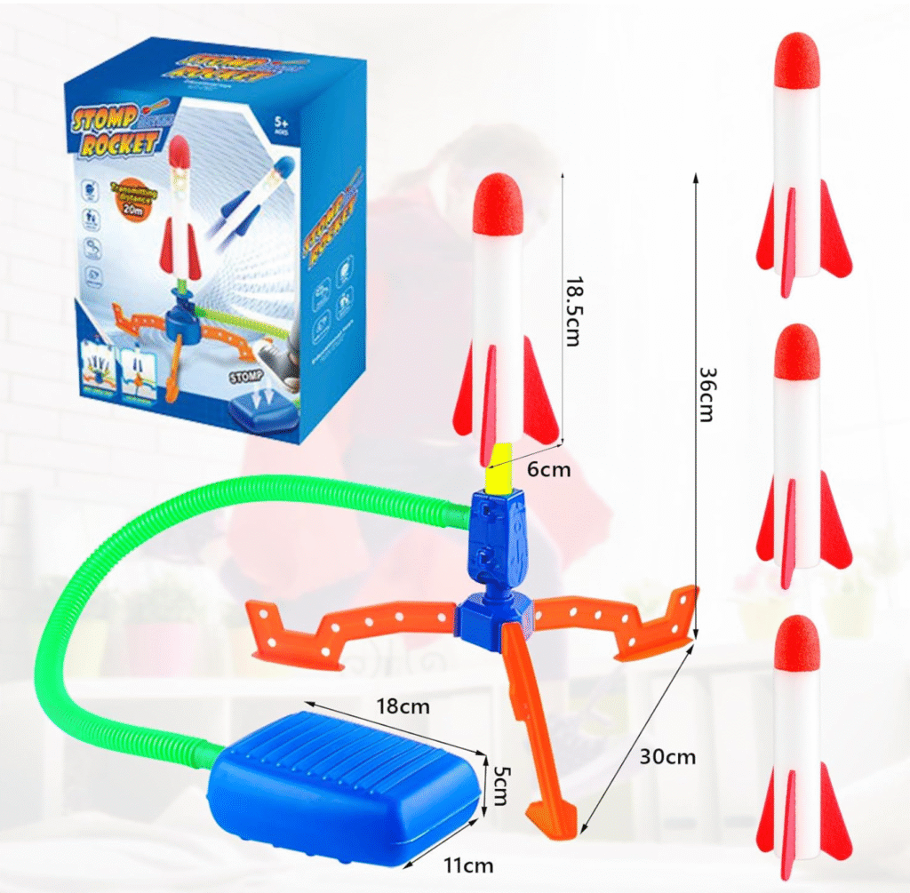 Bu raket oyuncağı 1 ədəd dayanıqlı köpük raket və 1 güclü ayaq pompası ilə gəlir. Sadə yığıla bilən quruluşu sayəsində uşaqlar onu asanlıqla özü ilə apara bilər.