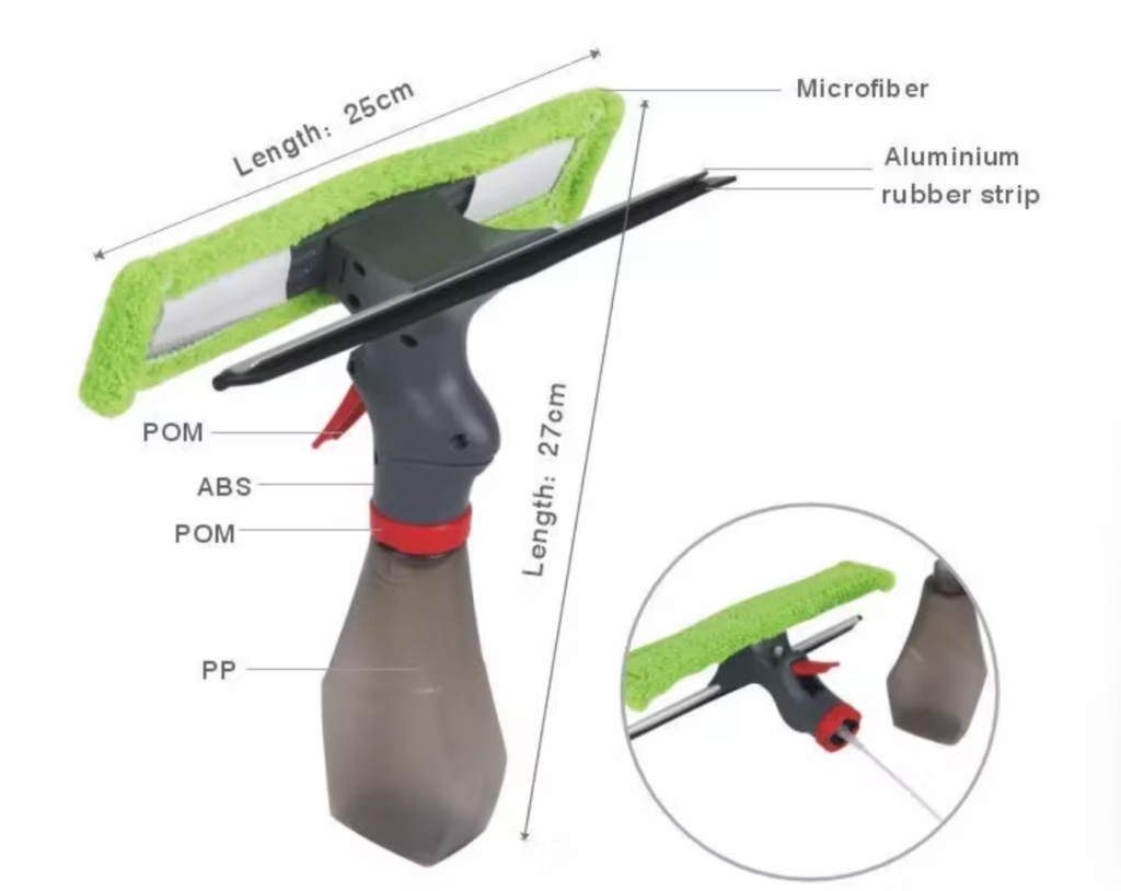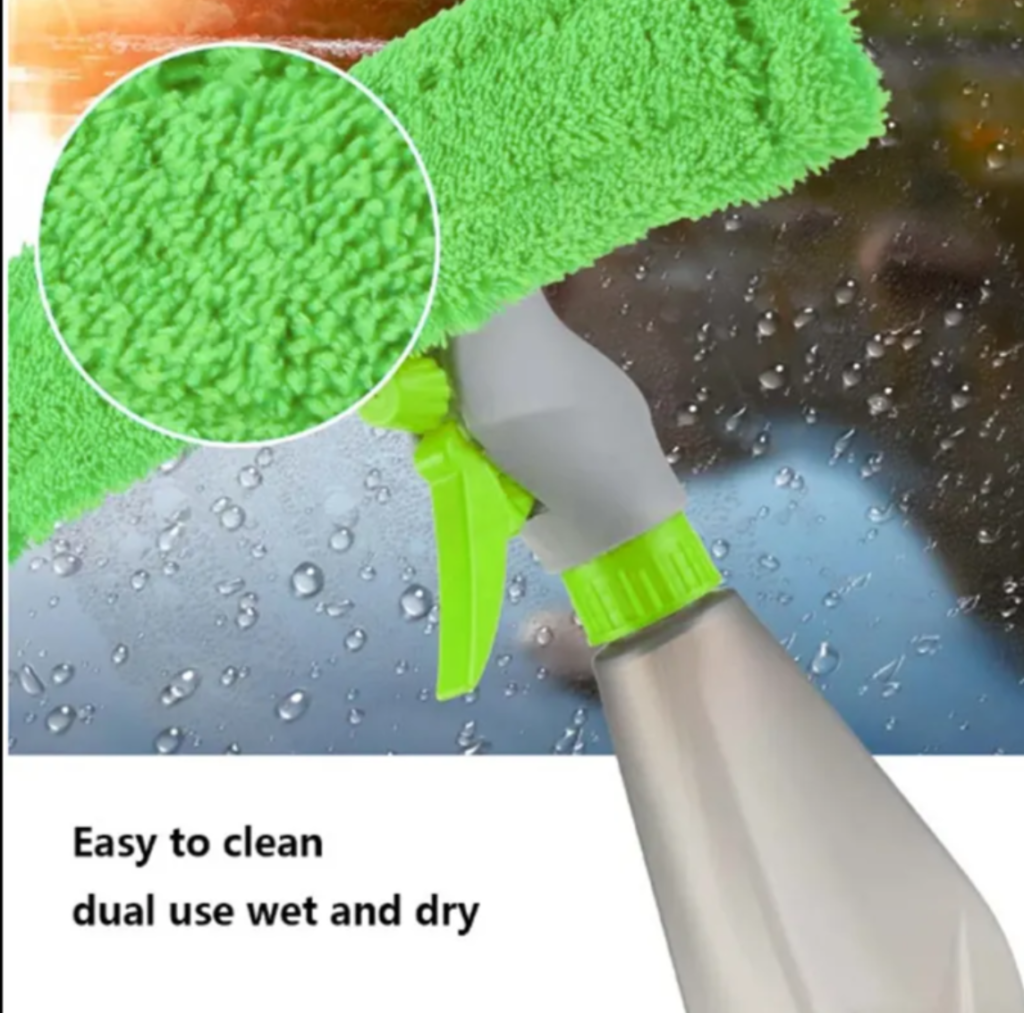 Mikrofiber təmizləmə bezi kir və ləkələri iz buraxmadan asanlıqla təmizləyir. Silikon kazıyıcı isə su ləkələrinin qarşısını alaraq şüşələrin parlaq görünməsini təmin edir. Təmizləmə aləti avtomobil pəncərələri, güzgülər və digər şüşə səthlər üçün idealdır. Döşəmə təmizliyi üçün də istifadə edilə bilər və 360 dərəcə fırlanma qabiliyyəti ilə hər küncə çatır.