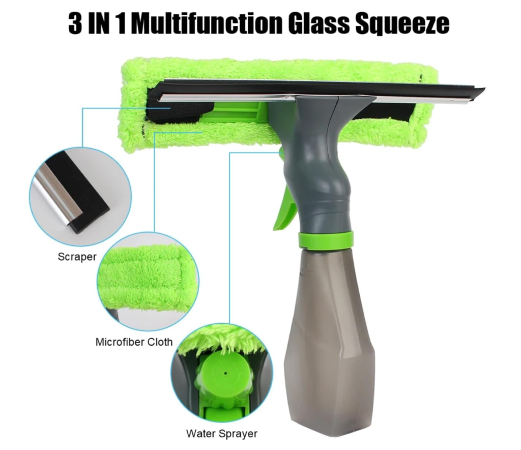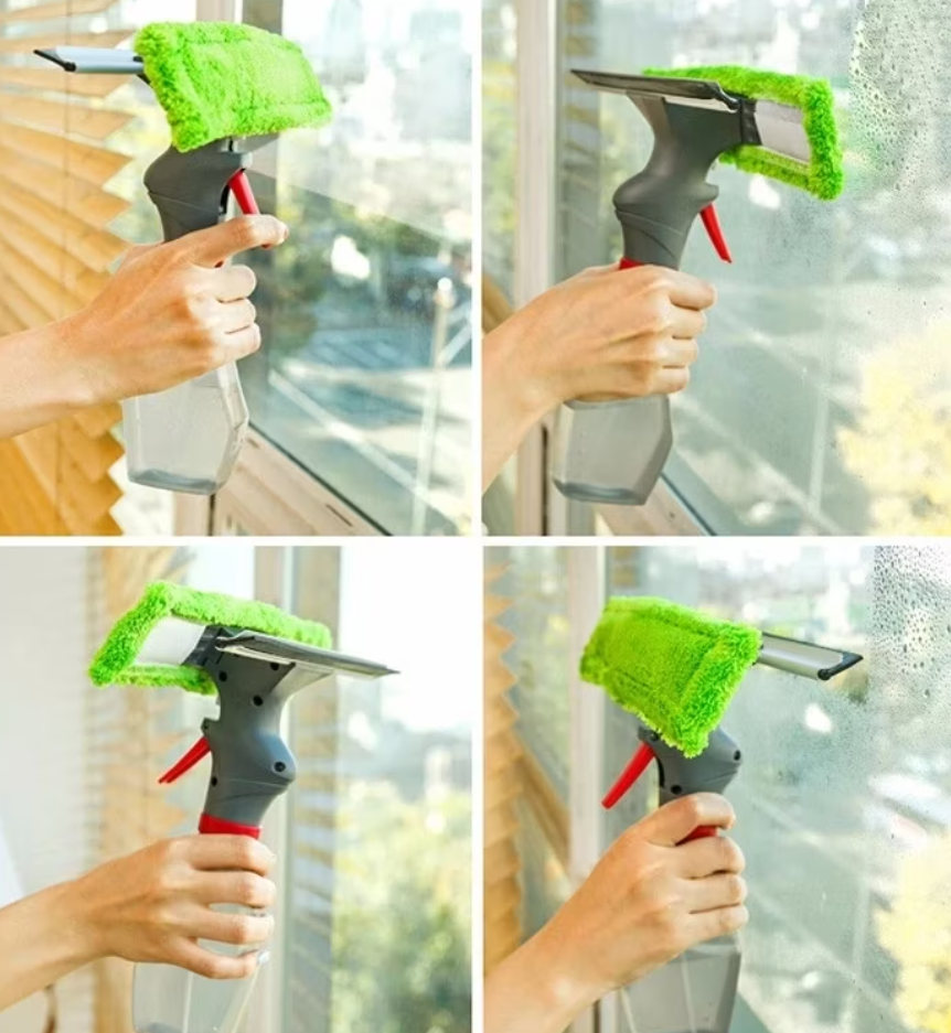 Bu 3-ü 1-də şüşə təmizləmə aləti sprey, qurutma və kazıyıcı funksiyalarını birləşdirərək, pəncərə və şüşələrin effektiv təmizlənməsini təmin edir. Böyük tutumlu su şüşəsi və atomizasiya nozzle-i sayəsində çiləmə prosesi daha sürətli və rahatdır.